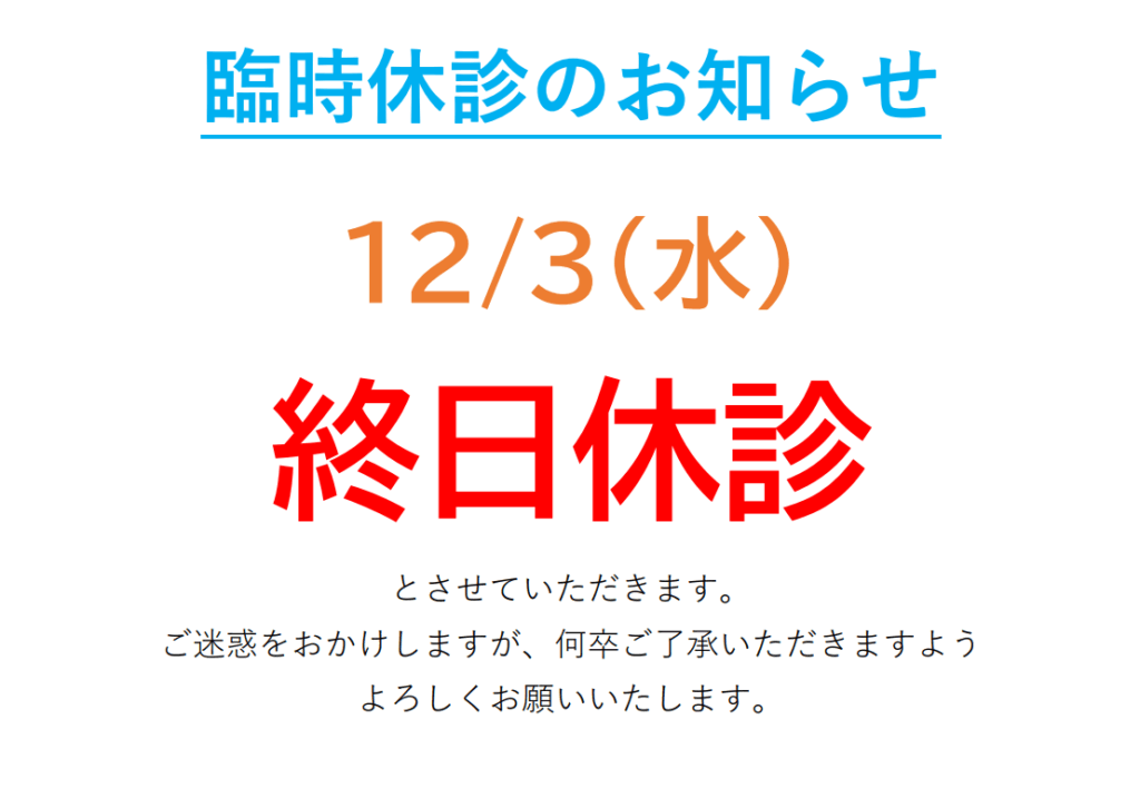 12/3(水)は終日休診となります。
