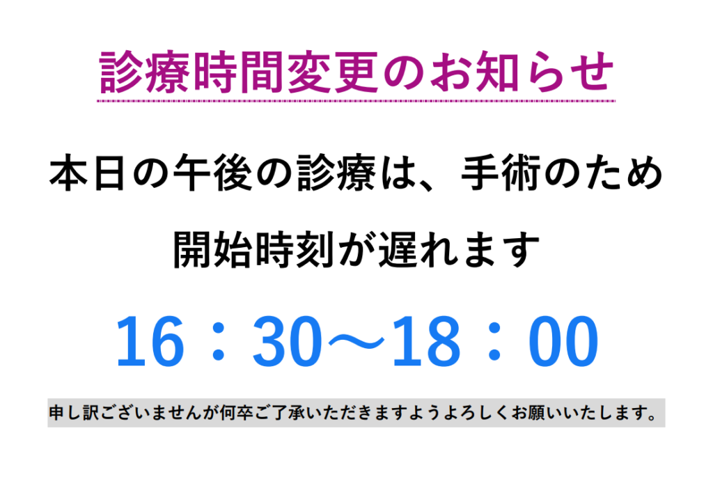 午後の診療開始時間が1時間遅れます。
