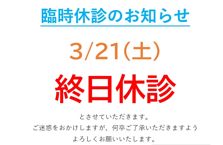 3/21(土)は終日休診となります。